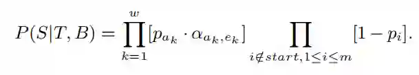 用 start 表示显著性分段的起始位置,用 pi 表示 P(li=1),于是 P(S|T,B) 可以表示为: