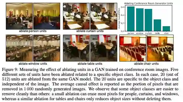 图9:测量在会议室图像训练的GAN中消融单元的效果