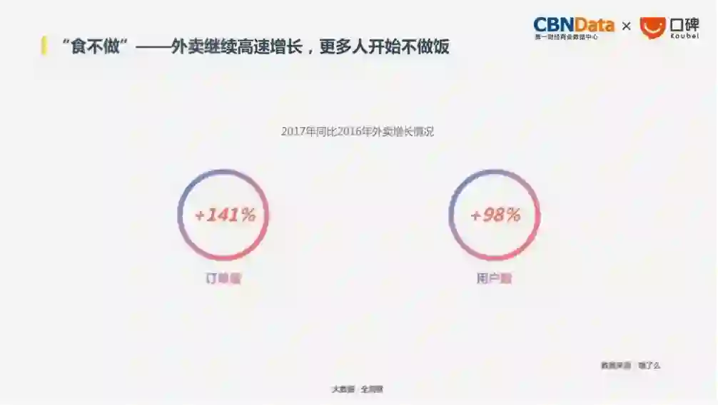 2017年外卖订单量比去年增长高达141%,注册用户数增长达98%。