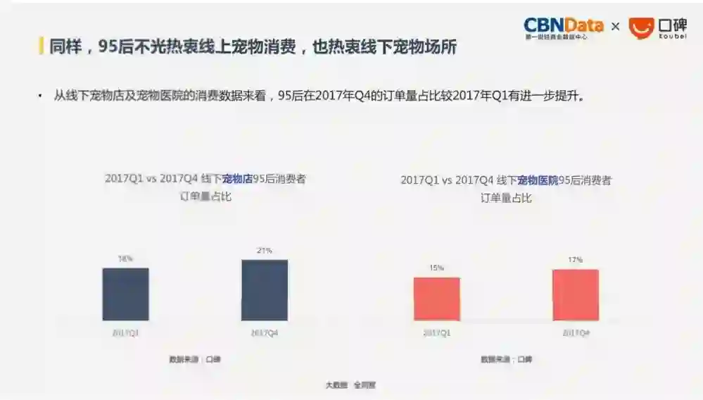 其中女性是线上宠物用品的消费主力,目前90后在消费人群中占比最高,不过95后的消费增速已经超过90后。