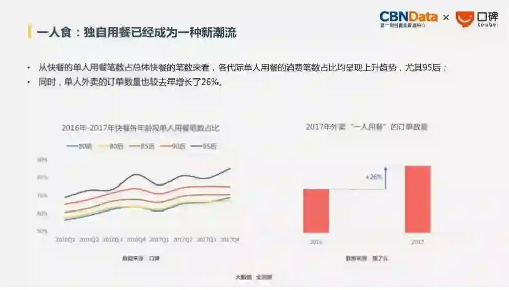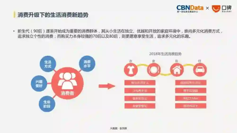 1月底,CBN Data第一财经商业数据中心联合阿里巴巴旗下本地生活服务平台口碑,发布了《2018生活消费趋势报告》,基于口碑、阿里、淘票票、饿了么等2015-2017年数据,全方位分析国民生活消费最新趋势。