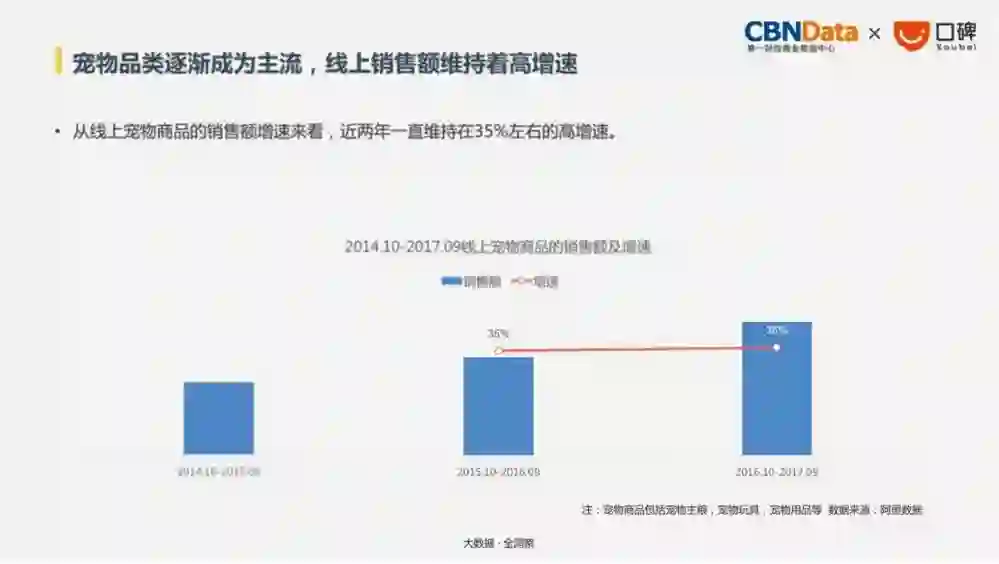 业内预计,中国宠物市场规模2017年有望突破1800亿元。线上宠物商品消费额近两年维持着35%左右的增速。