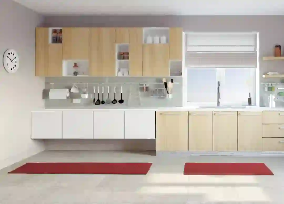 厨房较大,或有双边台面,可以铺上一大一小两张地垫,全面防护污渍。