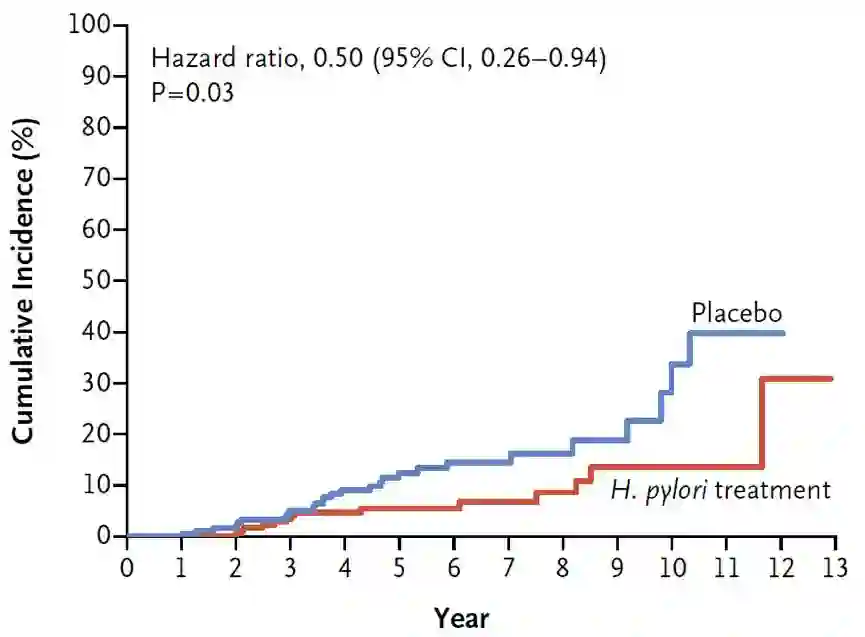 ►图5 通过幽门螺杆菌治疗预防异时性胃癌(来源:NEJM)