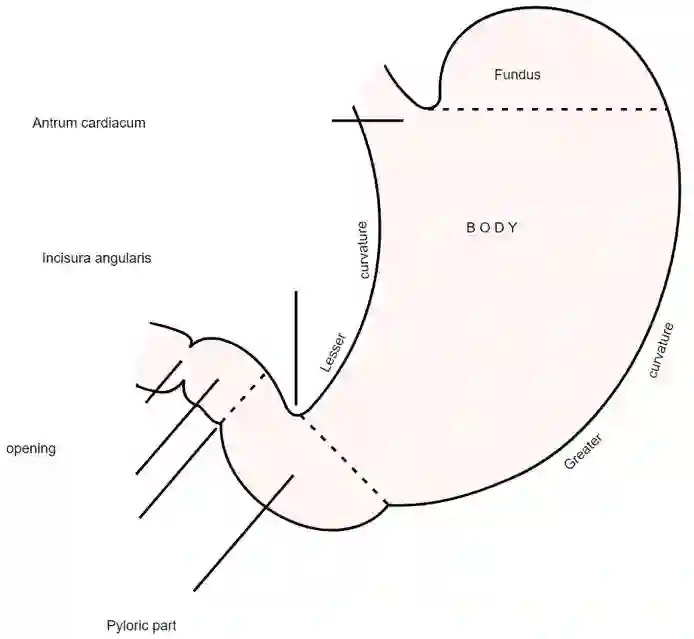 ►图7 胃的解剖结构、胃小弯(Lesser curvature)(来源:Gray’s Anatomy)