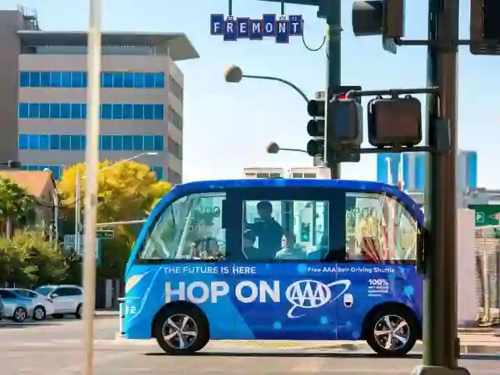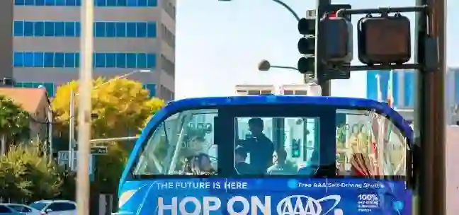 AAA、Keolis与 Navya连手打造的第一辆无人驾驶接驳公交车,在拉斯韦加斯展开试营运。(来源:AAA、Keolis)