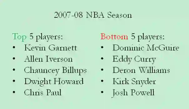 上图是NBA 07-08赛季头部和尾部Top5的球员,看起来非常靠谱,和大部分球迷的认知还是比较一致的。