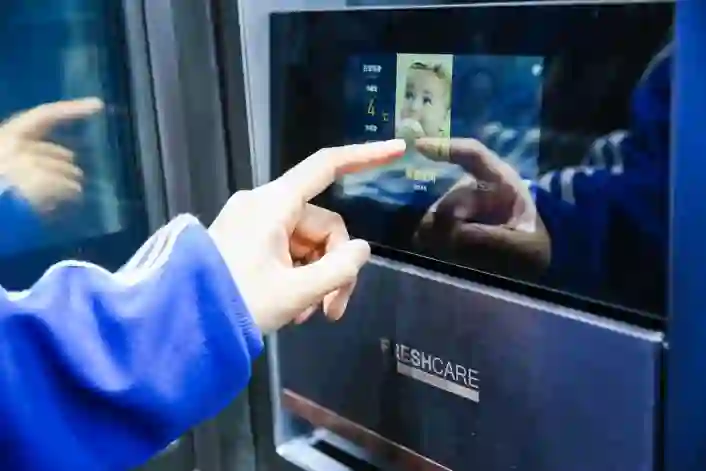 在冷藏空间我们能看到一个有着个性化自定义的存储空间,有保健品、母婴空间、化妆品三种模式,搭配一块7寸屏幕,对空间内的物品进行保质期提醒。