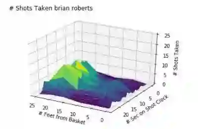 布莱恩·罗伯茨就是一名球员,他在三分线上投出了大部分投篮,尽管他并不是一个特别出色的三分投手。 请注意,在第三张图中,当投篮时间在3秒以内时,他低于联盟平均值: