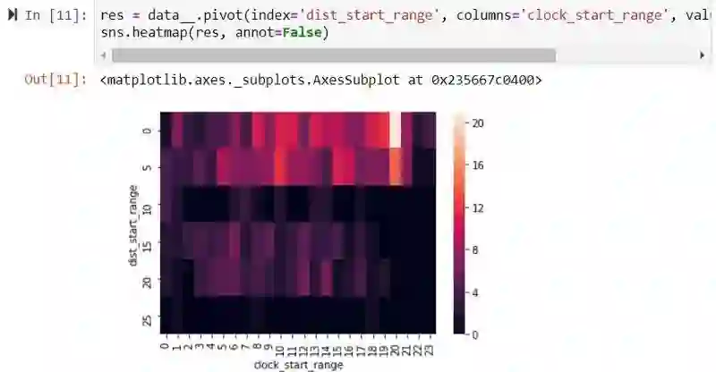 然后,我们对这些数据进行了2D热图,Y轴上为距离,X轴上为投篮时间。