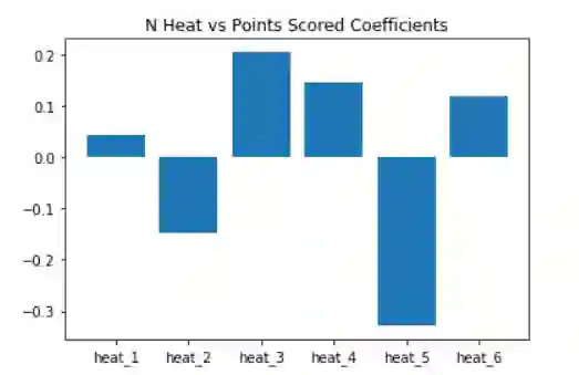 在最后的回归中,我们看到球员自有水平,即球员的真实投篮命中率,是平均热效应的8倍,并且是得分最重要的决定因素。 这并不奇怪,因为真实投篮命中率是在球员在一个赛季中的汇总,并且在定义上是衡量他们得分的指标。 防守条件也是一个相当大的贡献。 投篮条件基本上是投篮距离。 我们看到主场优势实际上不如热量重要。