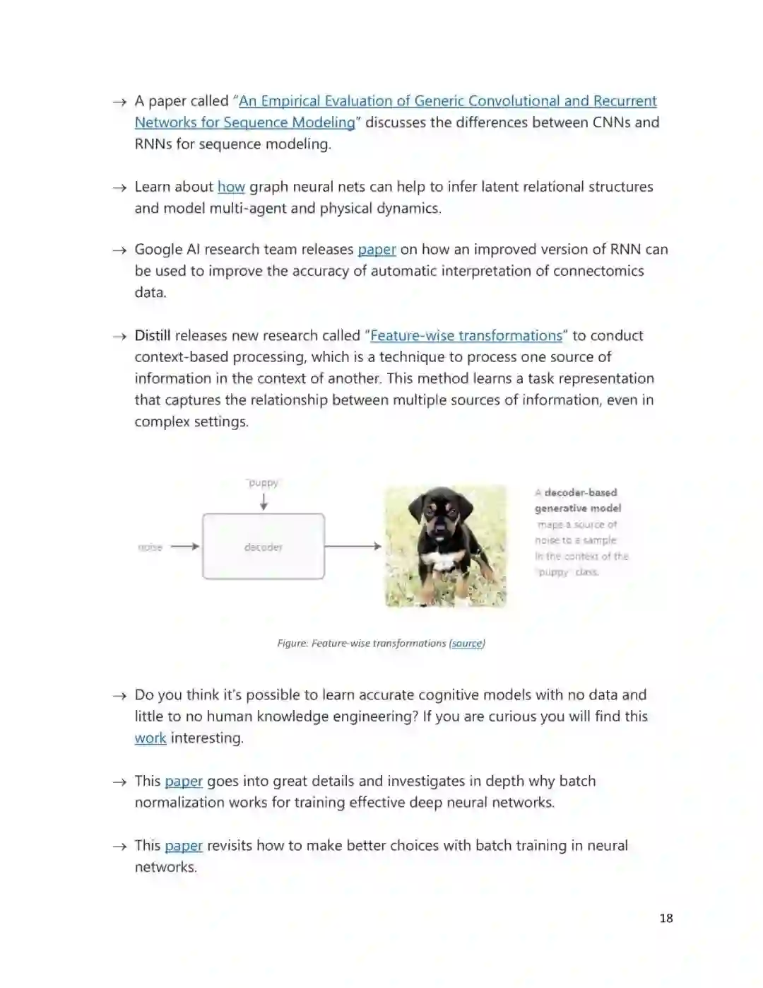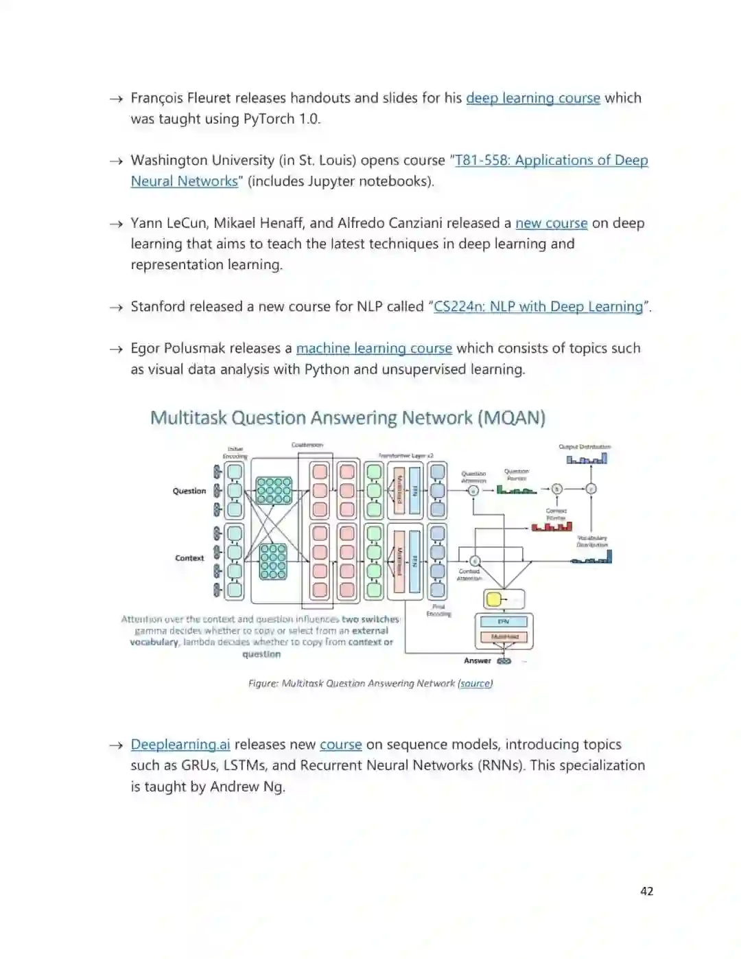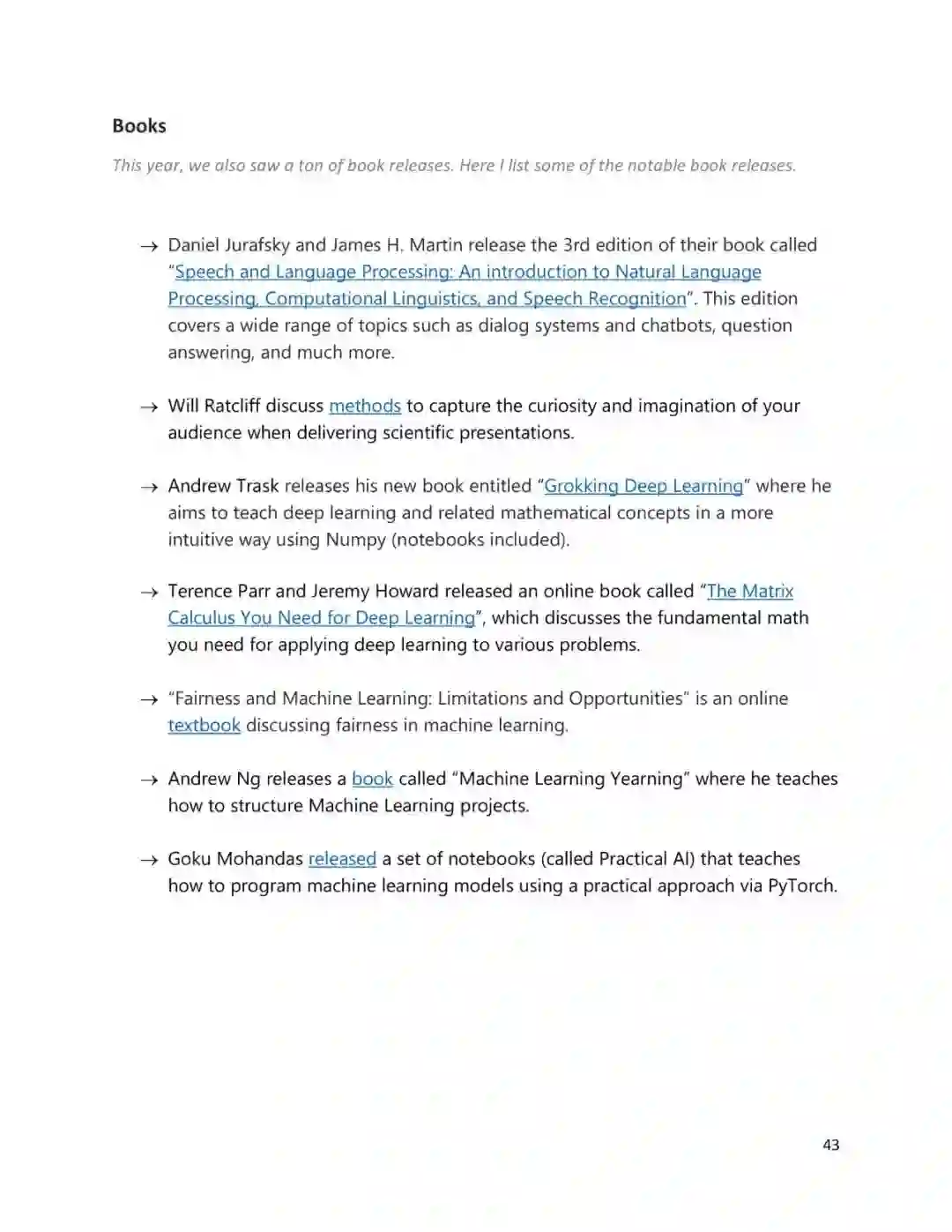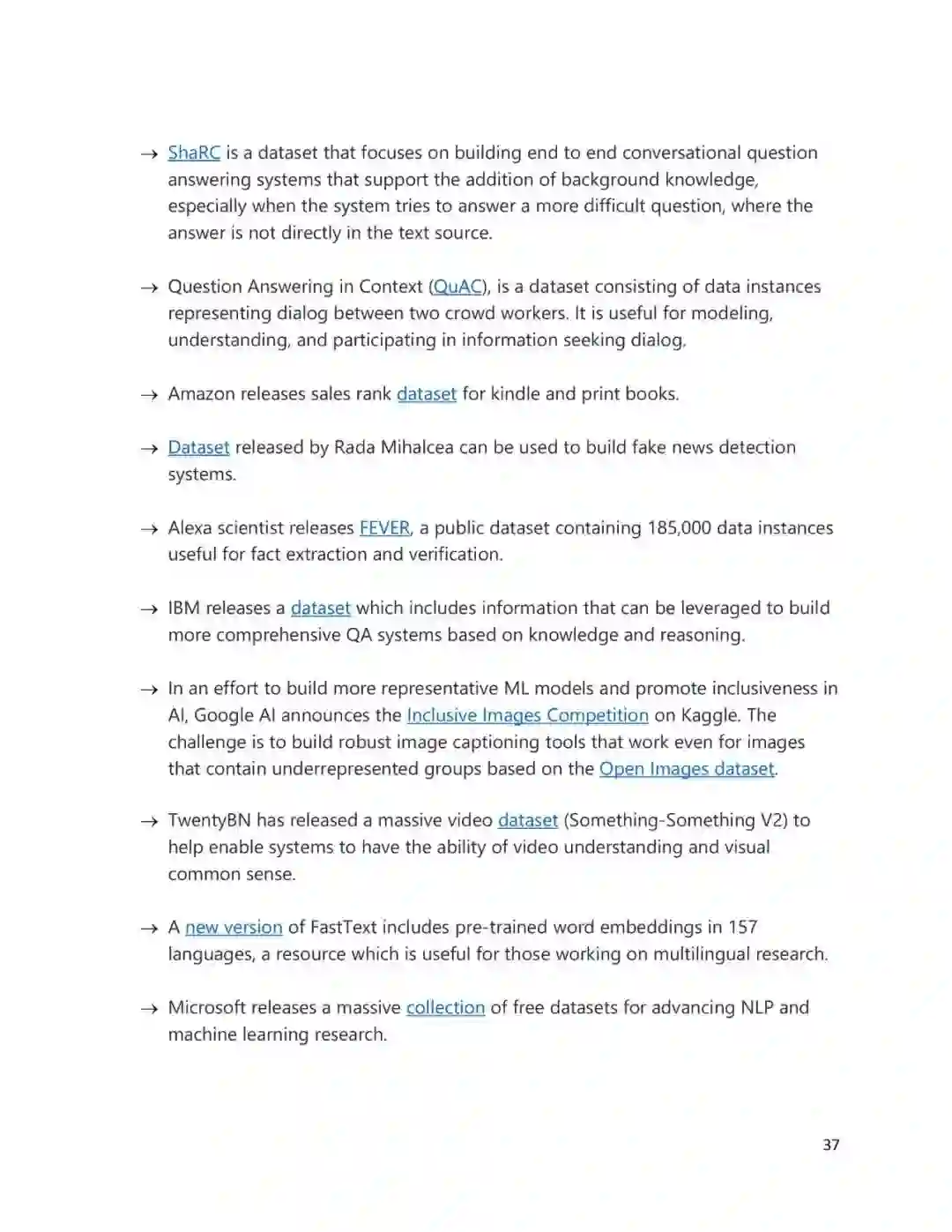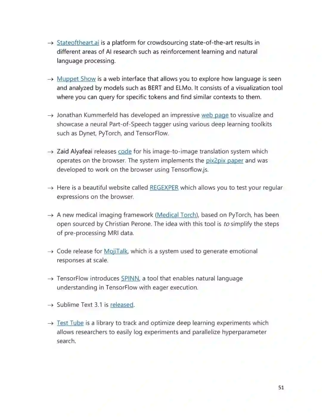 《NLP highlights of 2018》2018年学术界和工业界NLP最重要的事件和技术亮点,作者Elvis Saravia希望这份PDF可以为研究者和开发者起到指导作用(新手入门和专家进阶)。PDF的内容是dair.ai每周的NLP Newsletter的扩展汇编版本。作者将内容进行了分类,主要类别有:AI伦理学、研究出版、趋势、教育、资源、工业等。