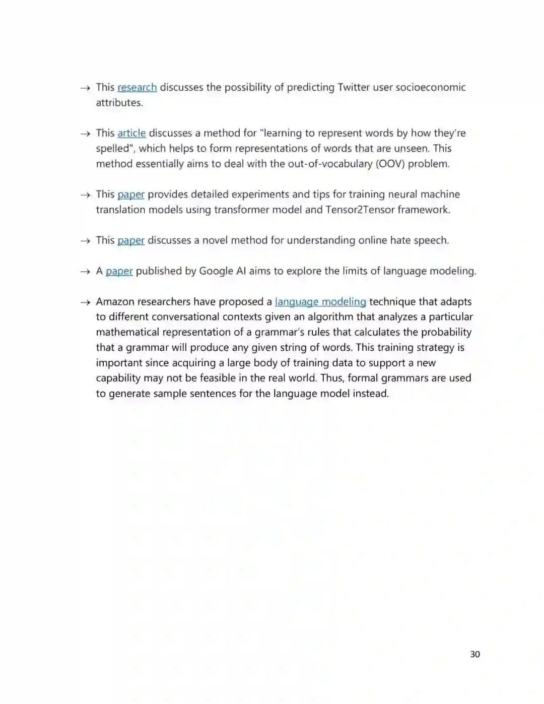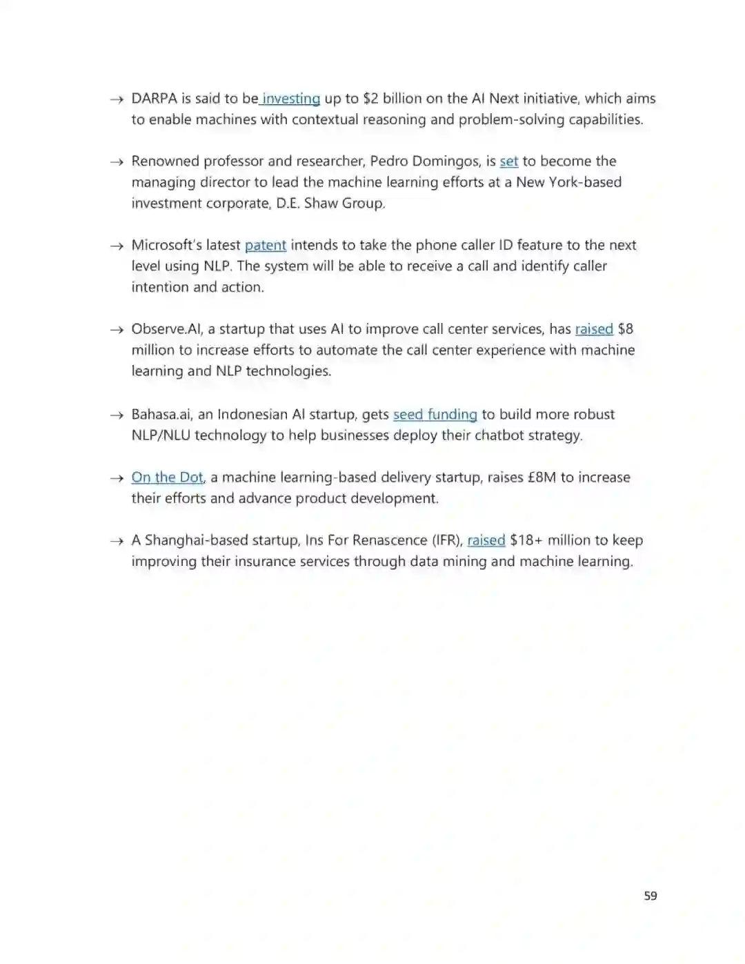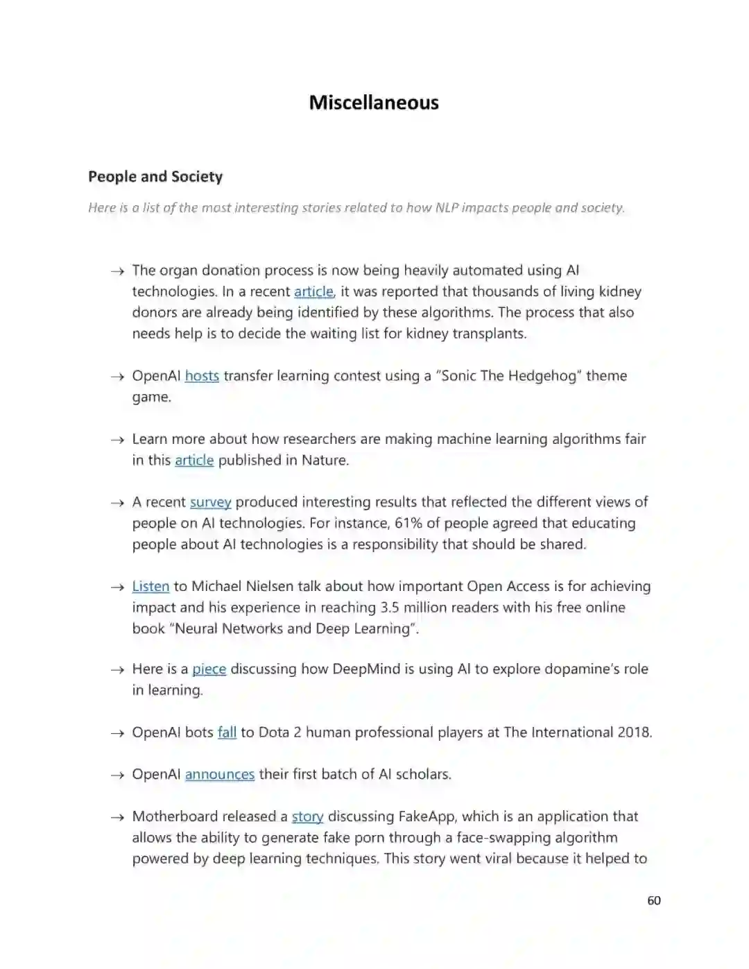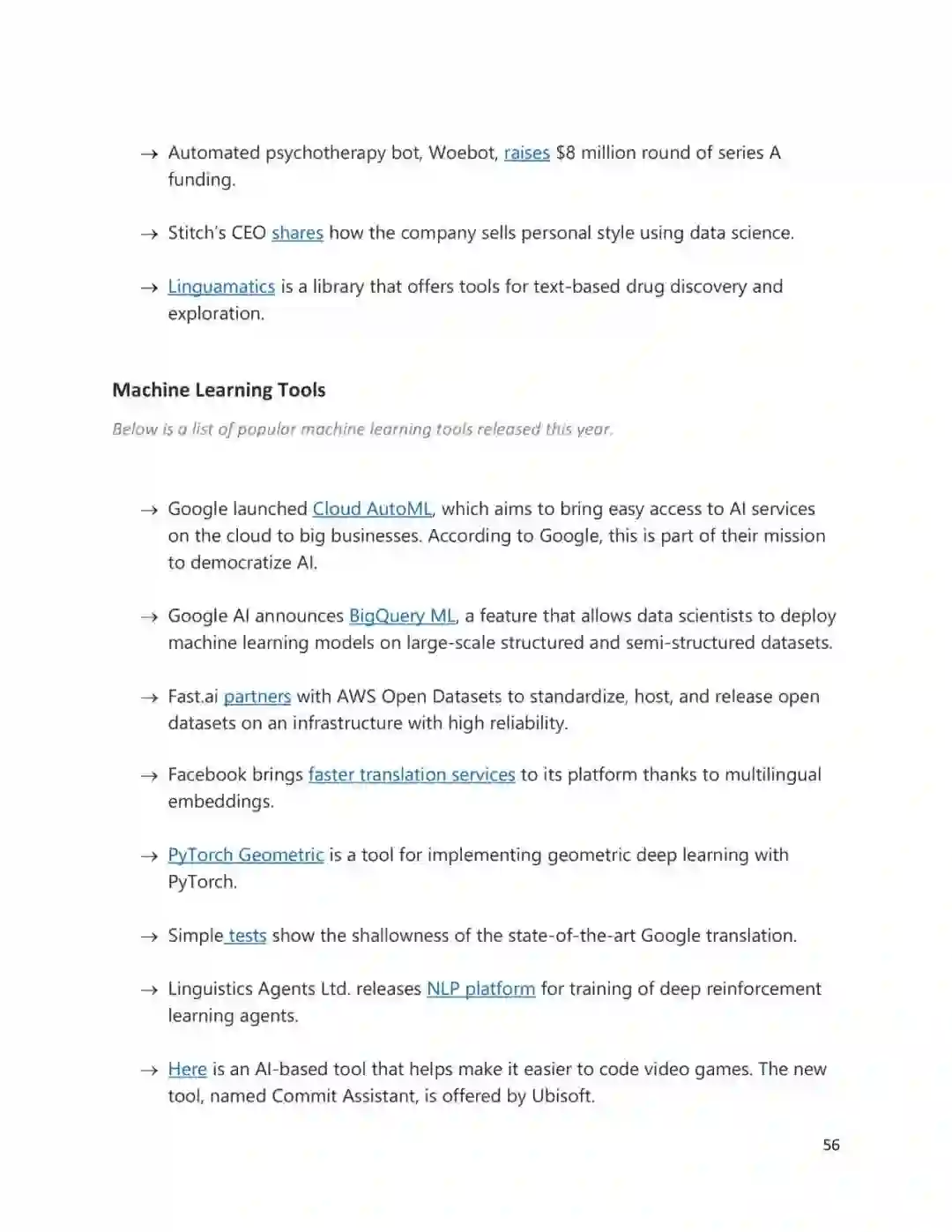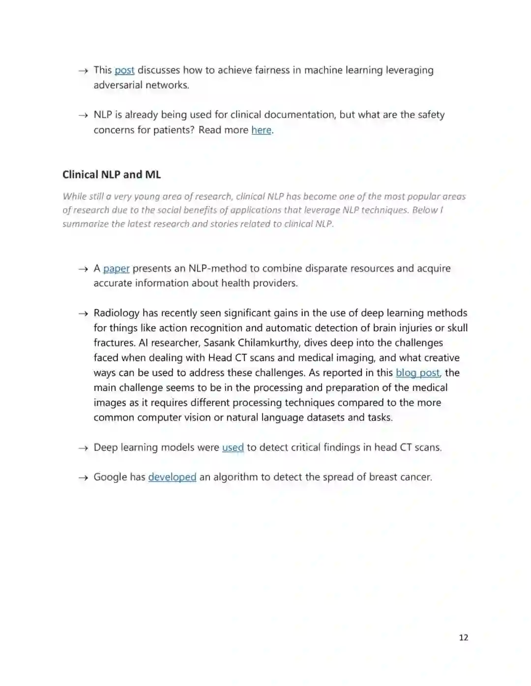《NLP highlights of 2018》2018年学术界和工业界NLP最重要的事件和技术亮点,作者Elvis Saravia希望这份PDF可以为研究者和开发者起到指导作用(新手入门和专家进阶)。PDF的内容是dair.ai每周的NLP Newsletter的扩展汇编版本。作者将内容进行了分类,主要类别有:AI伦理学、研究出版、趋势、教育、资源、工业等。