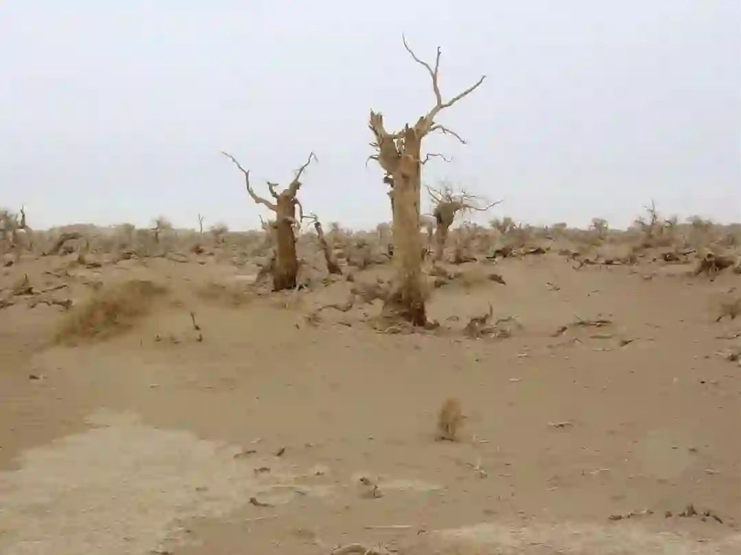 胡杨林是一种防沙的好树。在这样的荒漠地区,只要有一点点水,就能支撑胡杨林的生长。这种树不仅耐寒、耐热、 耐碱、耐涝、耐干旱,枝繁叶茂地还能抗御风沙。当然,还要配合种植榆树、沙枣、花棒等本地树种,让种植地区的生态系统能够活起来。人工培育几年稳固住局面,随着其他植物和动物的到来,这里就能永久地将沙漠化挡在门外。