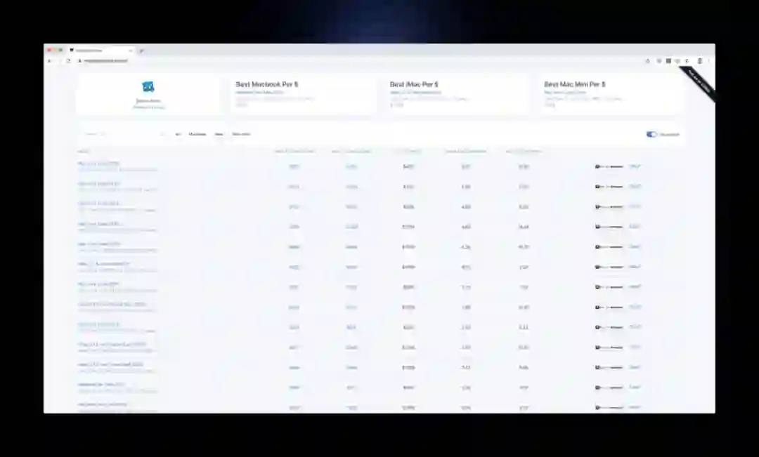 虽然有 数据 显示近期 Mac 的销量有所下滑,但其市场占有率却仍在提升。越来越多的开发者、设计师,以及文字工作者都偏向于选择 Mac 作为其主力生产工具。选择一款适合自己的 Mac 很关键,Macbook Prices by Performance 细心的整理了目前在售的 Mac 数据,包括 MacBook,Mac mini,以及 iMac 产品线。特别地,其提供了每一款 Mac 的性能跑分结果,我相信你可以参考选择一款兼顾性能和价格的 Mac。