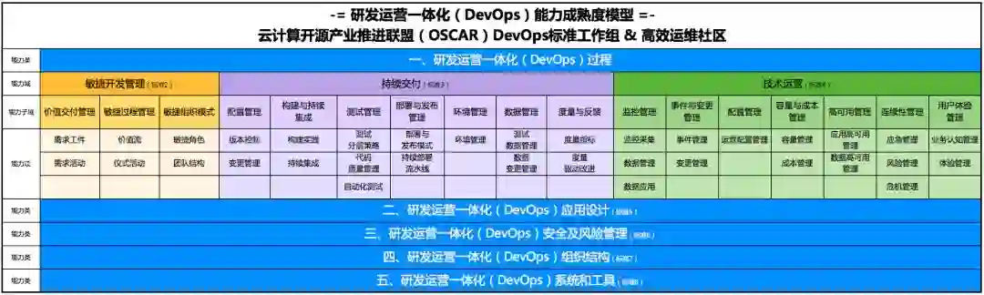 DevOps 标准评估体系主要包括敏捷开发管理、持续交付、技术运营、应用架构、安全及风险管理、系统和工具等部分的评估,目前可评估的部分主要是研发运营一体化(DevOps)过程中的持续交付部分。