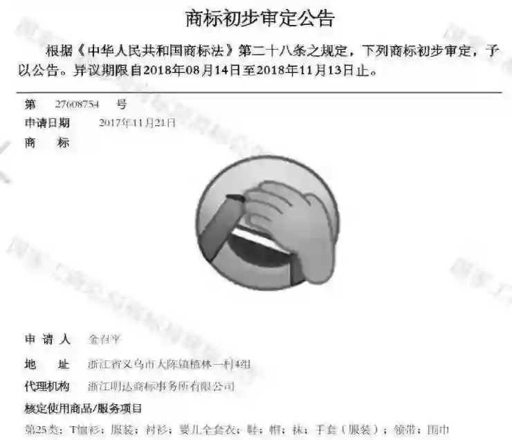国家商标局在8月13日发布了该商标的审定公告,异议期限为2018年8月14日至11月13日。