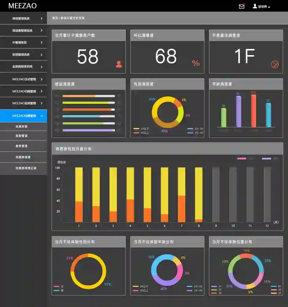 今年9月第一周,团队将整套系统正式交付给王府井管理人员。21个摄像头可覆盖入口、滚梯及重点服务柜台的全部重要营业区域,而整合的人工智能分析引擎从摄像头的影像可以提供客流(消费者)人数、消费者性别比例、消费者年龄区间、各楼层消费定位分析、消费者体验分析以及服务质量分析等8个维度的分析图表,直观地将几乎所有与消费者有关的数据展现在管理者面前。
