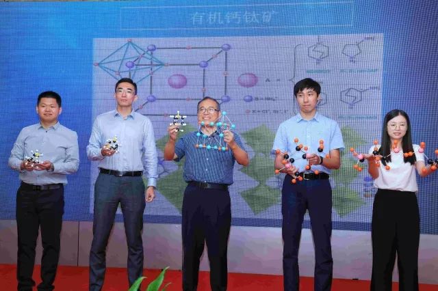 团队成员游雨蒙教授做了深入浅出的项目科普演讲。常见的钙钛矿材料主要有两种,无机钙钛矿和有机-无机杂化型钙钛矿。这两类钙钛矿材料均带有金属元素,虽然金属元素的出现赋予了钙钛矿材料某些功能性优势,但也加大了其加工、制备的困难。除此以外,某些金属元素更是会造成严重的环境问题。因此,人们一直在寻找钙钛矿家族中的第三类——全有机钙钛矿材料。国际顶级学术期刊“Science”曾在2002年预言过无金属钙钛矿材料的种种新奇特性。但是,十余年过去,无金属钙钛矿材料的发展一直止步不前。
