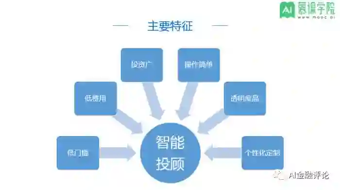传统投顾一对一的投资理财询问服务有成本高,服务对象少、知识储备不足,经验较少、存在道德风险等缺点。智能投顾将人工智能和大数据等技术引入投资顾问领域,可以处理海量的信息,快速应对时势。具有低门槛、低费用、投资广、易操作、透明度高和个性化定制六大优势和特点。