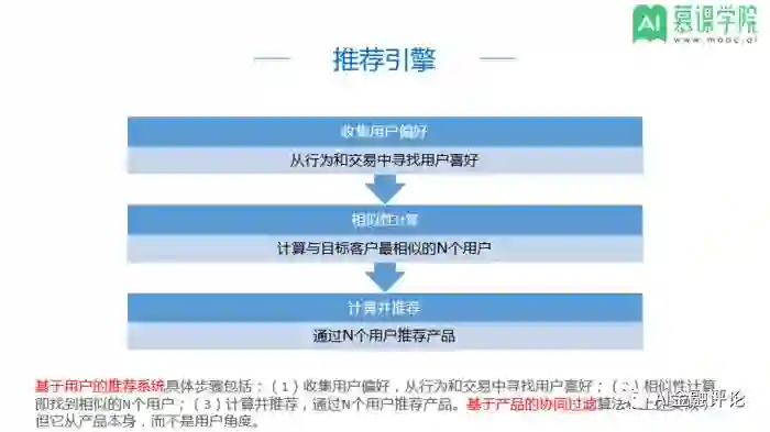 推荐引擎,即借助个性化推荐技术,基于用户的基本信息,从用户的行为和偏好中发现规律,进而判断用户是否对此项产品感兴趣,为不同用户提供个性化的内容,以此提升产品的内容吸引力。其实质是利用信息过滤技术向用户推荐其可能感兴趣的产品。根据实际各类推荐算法应用情况看,协同过滤推荐算法(即CF算法)比较适合金融机构采用,可尝试应用在智能投顾产品当中。