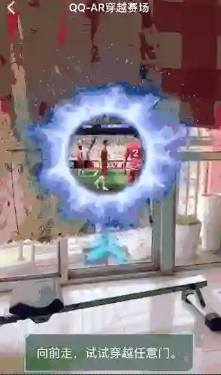 而通过点开手机QQ扫一扫内部新设置的“QQ-AR穿越赛场”按钮,就可以进入活动页面,然后在摄像头后画圈就能激活AR任意门功能。