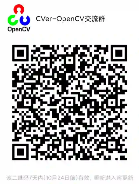 扫描下方二维码,即可加入CVer-OpenCV微信交流群。如果群已满,无法扫码进群,则可以添加CVer小助手微信:CVer5555,备注:OpenCV学习。即可手动拉你进群