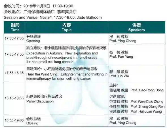 大咖聚集,共话IO,饕餮盛宴,不容错过! 2018年 11月9日17:30-19:00广州保利洲际酒店翡翠宴会厅肺癌免疫治疗焦点进展卫星会,敬请期待!