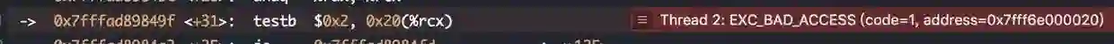 打开后发现是经典的EXC_BAD_ACCESS错误,以我浅薄的经验来看,这种一般是对一个已释放的内存的对象再次发送消息出现的。