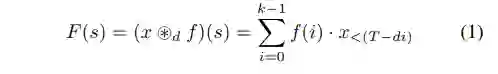 标准的卷积有一个固定尺寸的滤波器(filter),因此具有固定的时间理解。如果我们的目标是学习句子嵌入,我们需要能够建模更长时间窗口的过滤器,理想的情况是对整个句子建模。在 WaveNet 研究等工作之后,我们利用空洞卷积在 TCN 的不同层,感知一个比较大的时间上下文窗口。对于输入序列 x=x1,...,xT ∈R(T) 长度为 T 和滤波器(filter)f:{0,...,k-1}→ R ,filter 的大小为 k,在序列的元素 s 上的空洞卷积操作运算 F 为: