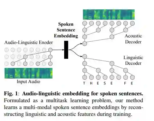 在这项工作中,我们的贡献包含两个方面。首先,我们建议通过学习口语句子的嵌入,从音素、字符和单词级的表征转移到句子级的理解。其次,我们设计这种嵌入来捕获语言和声学内容,以便学习可适用于各种语音和语言任务的潜在编码。在消融研究中,我们验证了嵌入的质量,并且评估了句子级别嵌入在语音识别和情绪分类中的一般性。我们相信这项工作将激励今后在语音处理、语义理解和多模态迁移学习方面的工作。