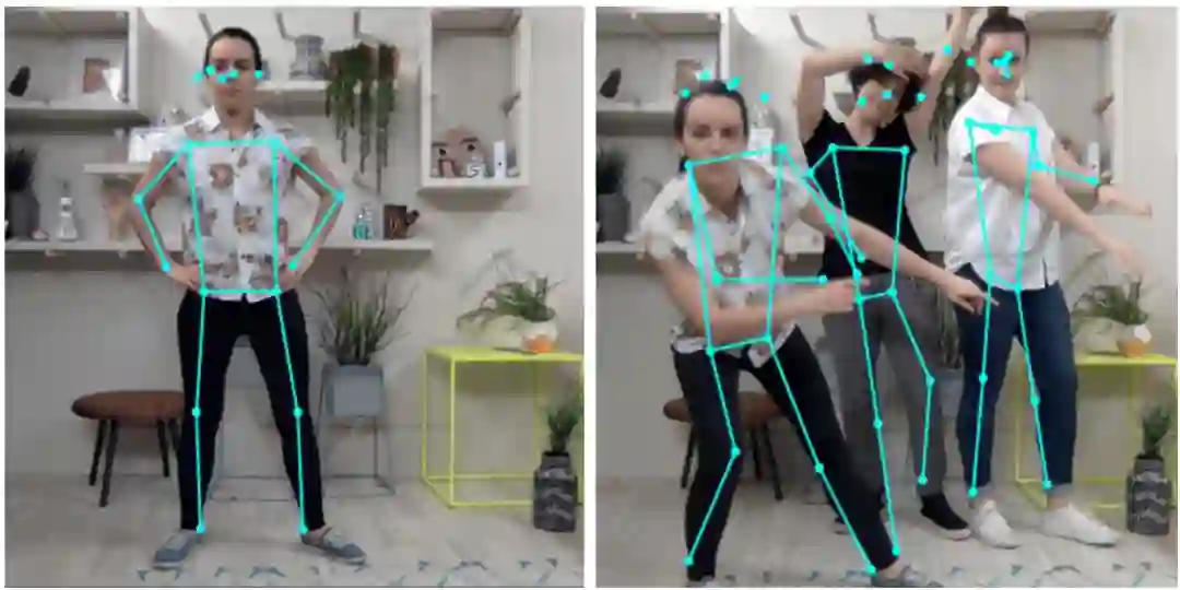 如前所述,单姿态估计算法是两者中较简单也较快速的。理想的使用场景是当输入的图像或视频中只有一个人时使用这种算法。其缺点在于,如果图像中有多个人,则来自两个人的关键点可能被估计为同一个姿态的一部分——这意味着,A 的左臂和 B 的右膝可能被该算法归为同一姿态。因此,如果输入的图像可能包含多人,则应当使用多姿态估计算法。