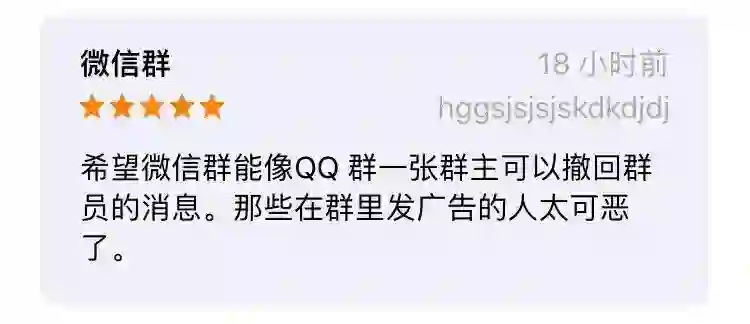 这次,除了七年前的差评,我们还截取了一些App store里用户对目前微信功能的建议。