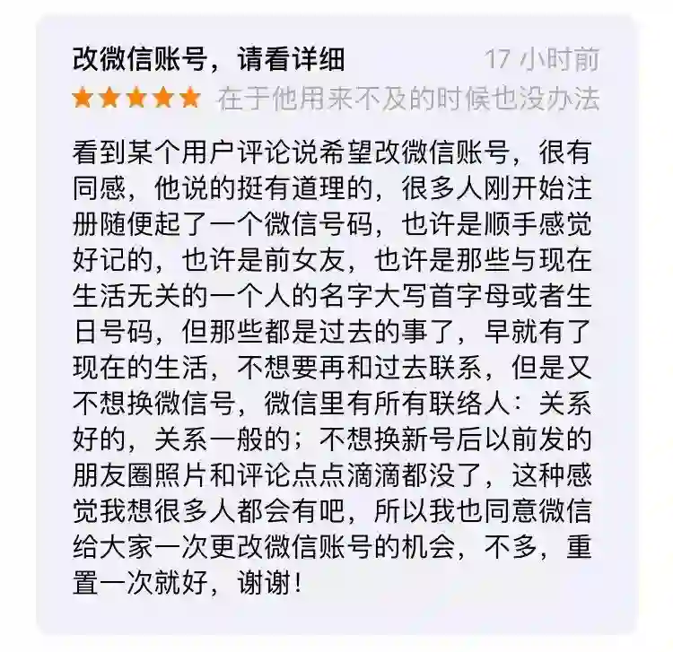 还有很多人希望可以更改微信账号,哪怕给一次机会也好。