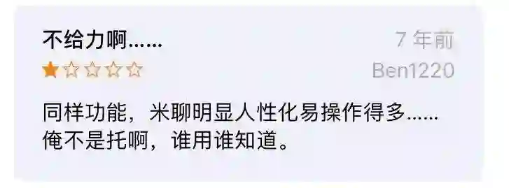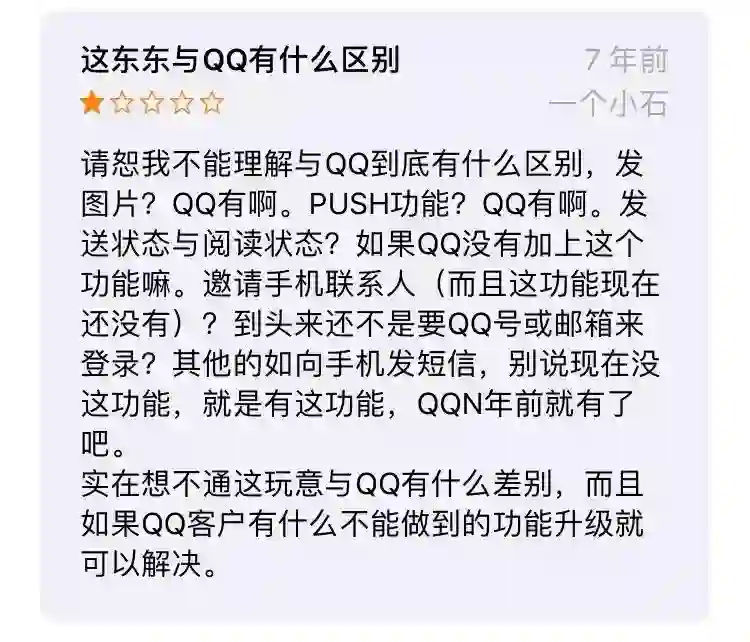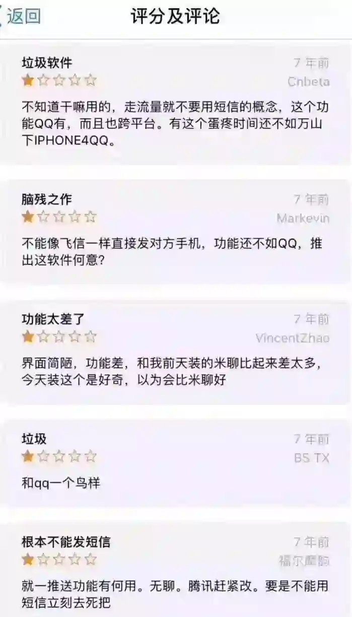 而七年前的微信产品评价里,这样的声音就更多见了,不难看出,有很多还是米聊的用户。