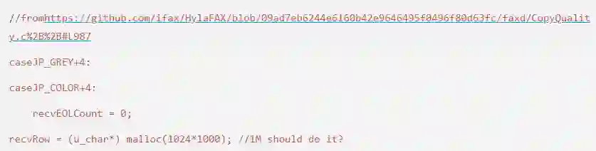 在我们的研究过程中,我们发现HylaFAX和HylaFAX+的功能非常丰富,而且完全可以实现传真机通信的全部要求。除此之外,它们的源代码也非常好读,不过在读源代码的过程中,我们发现代码中负责进行ECM页面传输的部分存在安全问题。请大家看下面的代码: