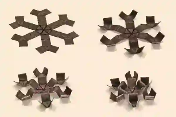 这一结构体能够在磁铁的控制下进行多种变形:一个在磁力作用下,光滑的表面起了波纹的环;一个一端能张合的管道;一个能自行折叠的金属片;一个蜘蛛形的“爪钩”,能够爬行、滚动、跳跃,还能及时抓住一闪而过的球。它甚至还能在磁铁的引导下用自身包裹住一粒小药片,将药片运送到桌子的另一端。