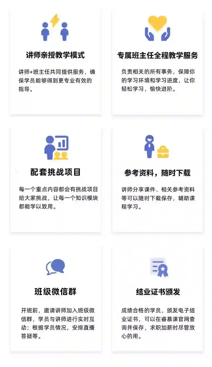 除了老师会亲自带班授课外, 本一期课程将聘请2位助教老师陪同小伙伴一期学习, 帮助大家提高学习效率, 他们来自于: 往期班级的优秀学员、企业工程师等。