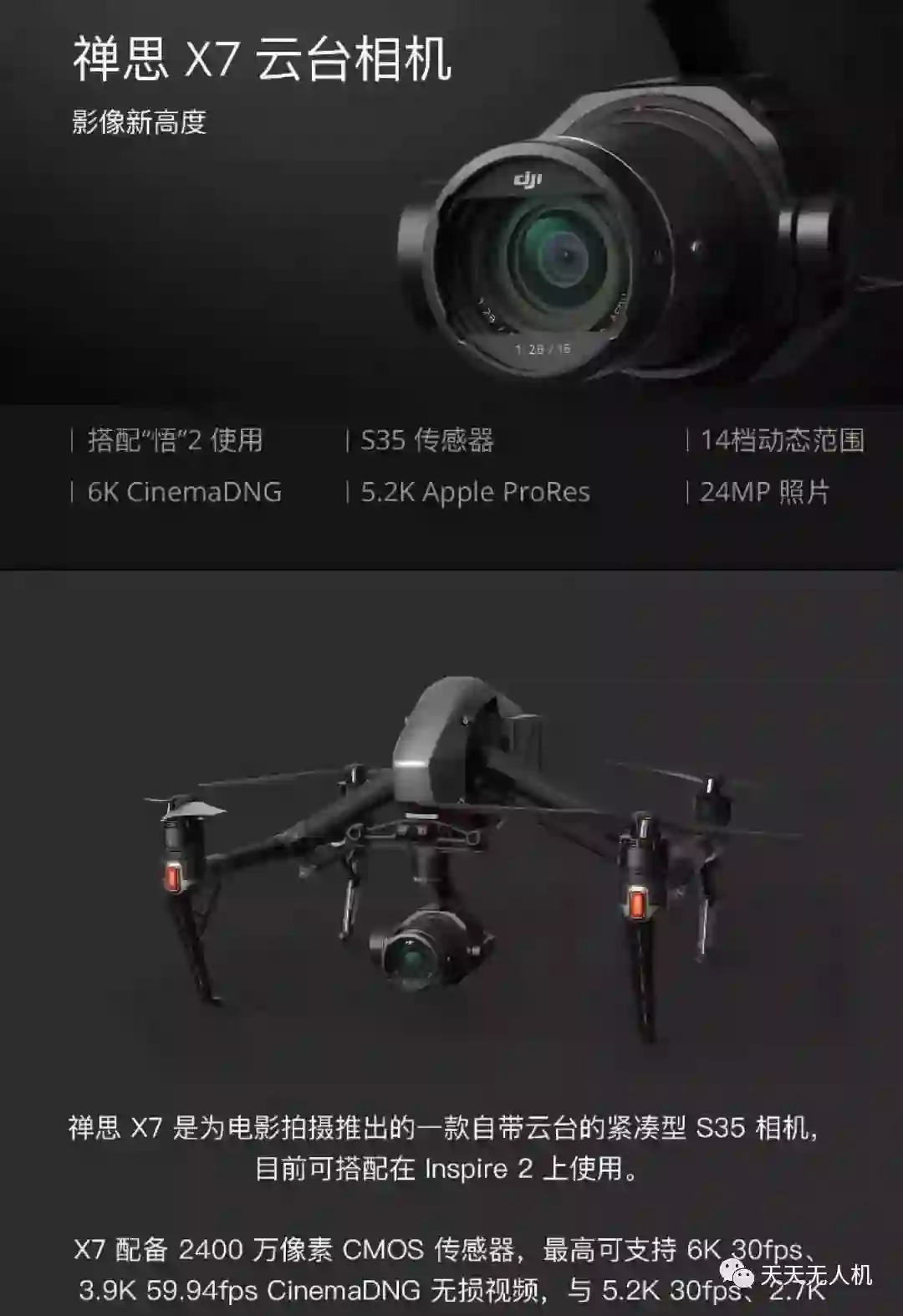 大疆X7相机最高分辨率6K。