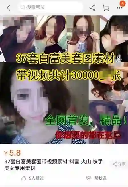 其实想想也知道,如果是商家自己的专人团队拍摄,成本未免也太高了,10块8块的售价,根本回不了本。这些素材也是商家们在各大社交平台搜集所得,几乎都末经过当事人的同意和授权(谁会同意这个啊),涉嫌盗图和侵权。