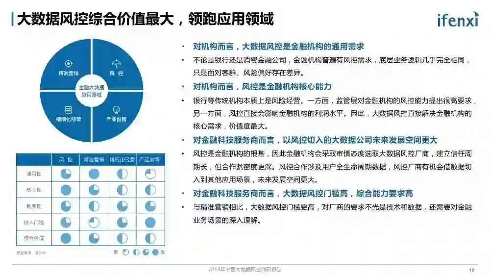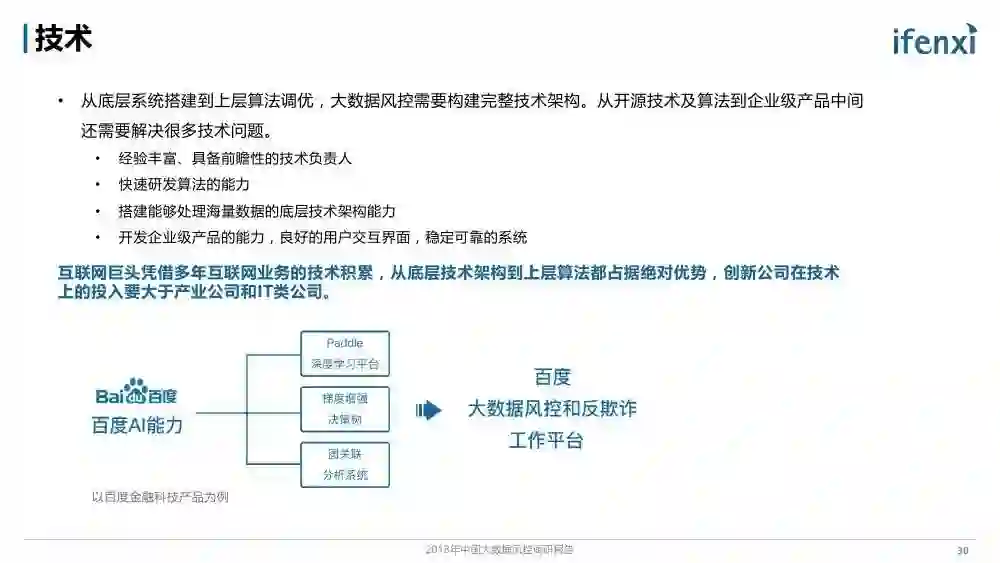 随着金融科技的深入发展和多方面应用,以大数据等科技手段提收增效成为金融行业核心诉求。3月12日,百度金融携手爱分析联合发布了《2018年中国大数据风控调研报告》,对能够有效降低金融风险管理成本的大数据风控技术和市场进行了研究分析。