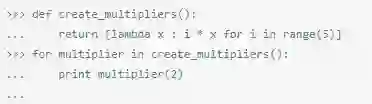 是不是非常吃惊!出现这种情况主要是因为Python的后期绑定行为,该变量在闭包中使用的同时,内部函数又在调用它。