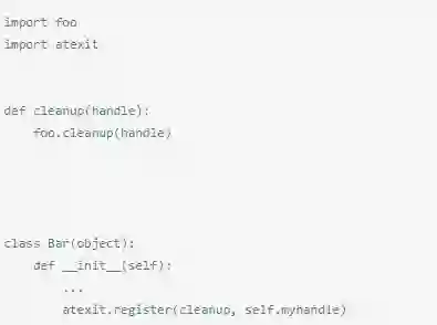 一个很好的解决办法是使用atexit.register()代替。顺便说一句,当程序执行完成后,您注册的处理程序会在解释器关闭之前停止 工作。