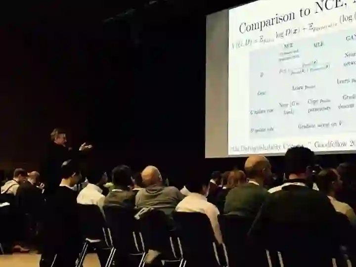 当时,Goodfellow正讲到GAN与其他模型相比较时,Schmidhuber便站出来提问打断。