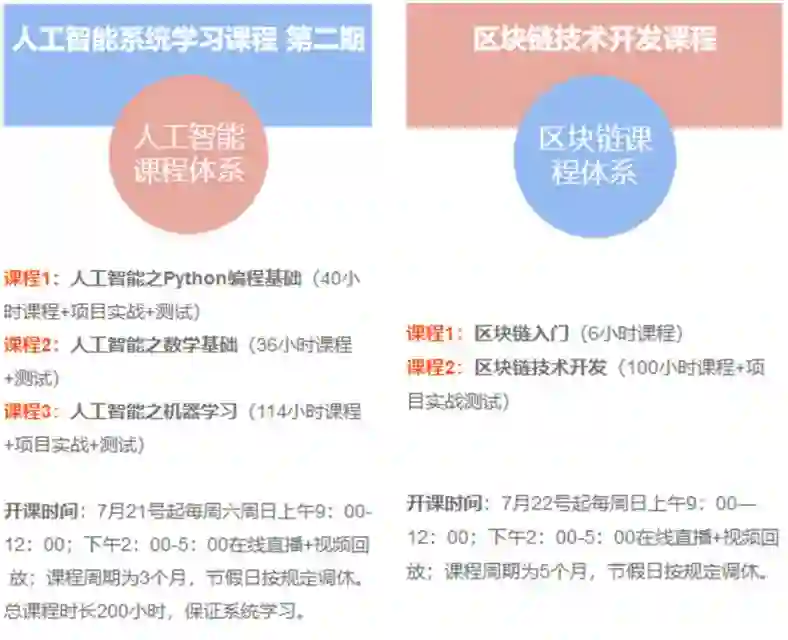 课程费用:人工智能和区块链课程售价均为