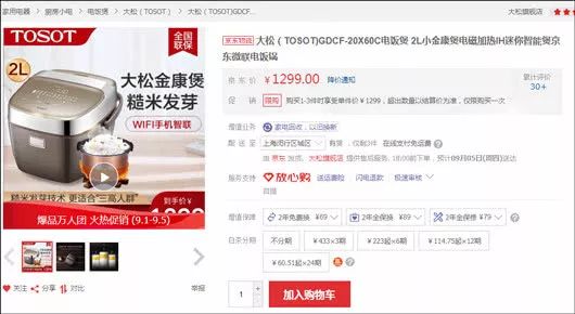 观察者网发现,格力商场中这款产品的品名中标注着“大松金康煲 2L 糙米发芽饭适合三高人群食用”。但在下面的商品介绍中,没有任何关于适合三高人群食用的内容。