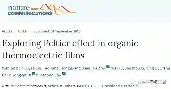 热电材料可以实现温差和电能之间的直接转换,是重要的能源材料之一。作为新型热电材料体系,有机热电材料在柔性、低成本供电器件和自供电传感器方面具有广阔的应用前景(Natl. Sci. Rev. 2016, 3, 269. Nat. Commun. 2015, 6, 8356)。近年来,有机热电材料研究开始起步并得到广泛关注,关键性能指标不断攀升,成为有机电子学中重要的前沿研究方向之一。尽管如此,有机热电材料与器件的基本效应研究严重缺乏,限制了领域的快速发展。