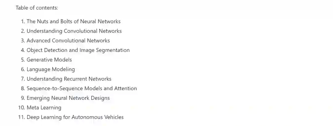 【导读】 本资源是由Packt出版的《Python深度学习进阶》一书的代码库。主要包含:神经网络的基本要素(The Nuts and Bolts of Neural Networks)、卷积网络(Convolutional Networks)、目标检查和图像分割(Object Detection and Image Segmentation)、生成模型(Generative Models)、语言建模(Language Modeling)、递归网络(ecurrent Networks)、序列到序列模型和Attention(Sequence-to-Sequence Models and Attention)、元学习(Meta Learning)、自动驾驶深度学习(Deep Learning for Autonomous Vehicles)等等。