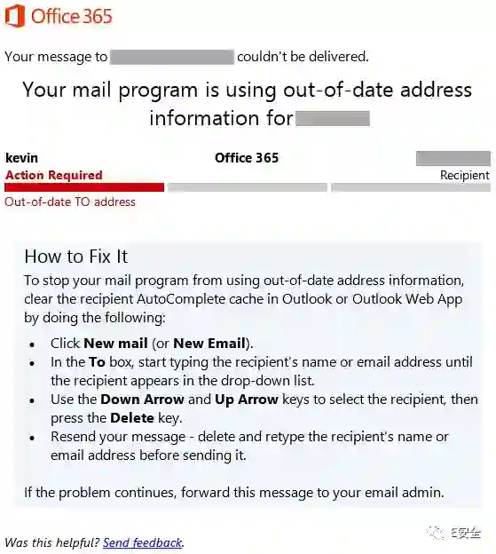 小编来报:网络钓鱼活动伪装为Office 365的未送达通知,可将用户引至另一页面以尝试窃取其登录凭证。