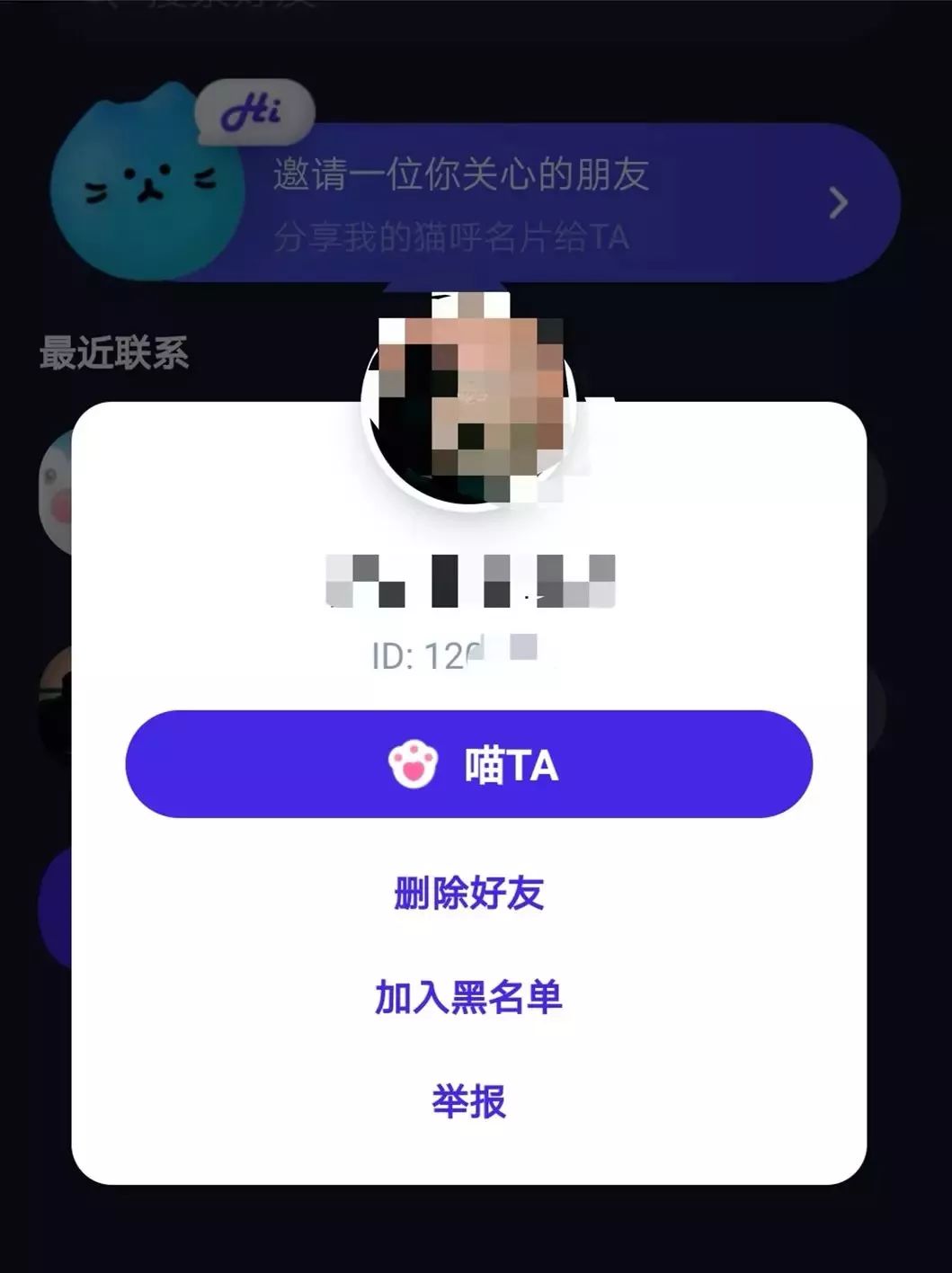 Tech星球体验后发现,现阶段的猫呼玩法还很单一。两位用户互相添加为好友后,无法使用文字及图片进行交流,仅支持视频聊天,甚至不存在聊天对话框。